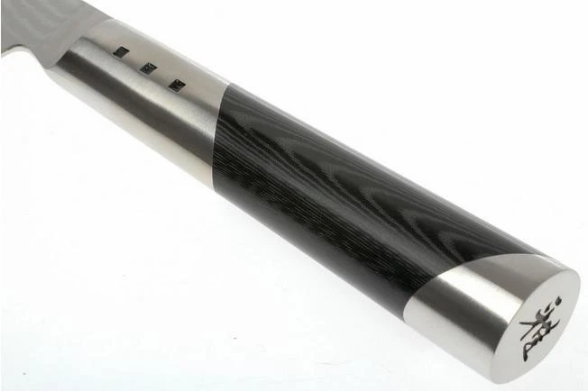 The gyutoh from the 7000D-series of the Miyabi by Zwilling is a chef’s knife that combines the very best cutting properties with an irresistible design. Only the very best materials have been used in the creation of this beautiful knife. In addition, the knife is sharpened in the traditional three-phase Japanese method, which results in a sharpening angle of no more than ten degrees: unbeatably sharp.