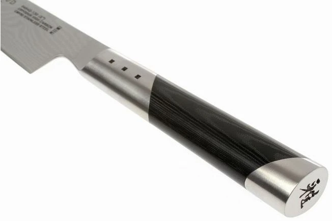 Theshotoh from the 7000D-series of the Miyabi by Zwilling is a paring knife that combines the very best cutting properties with an irresistible design. Only the very best materials have been used in the creation of this beautiful knife. In addition, the knife is sharpened in the traditional three-phase Japanese method, which results in a sharpening angle of no more than ten degrees: unbeatably sharp.