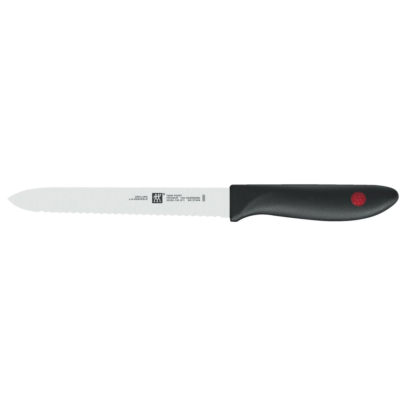 This utility knife from the TWIN® Point series is a true all-rounder for any kitchen. The durable and versatile knife is ideal for preparing cold dishes and snacks. Thanks to its balanced and timeless design, the utility knife also looks amazing. Featuring a 13 cm long blade with serrated edge, the utility knife is the perfect choice for preparing a cold meal as it cuts raw fruit and vegetables as well as cold meats, cheese and baguette into clean and even slices. The sharp, serrated cutting edge is also ideal for cutting soft food with a hard surface, such as tomatoes. Thanks to its ergonomic plastic handle, the utility knife is comfortable to hold while cutting and a sharp and light-weight kitchen aid due to the high-quality, ice-hardened stainless steel. It can even be cleaned in the dishwasher as it is corrosion-resistant. This classic and reliable utility knife by ZWILLING is a great addition to any kitchen.