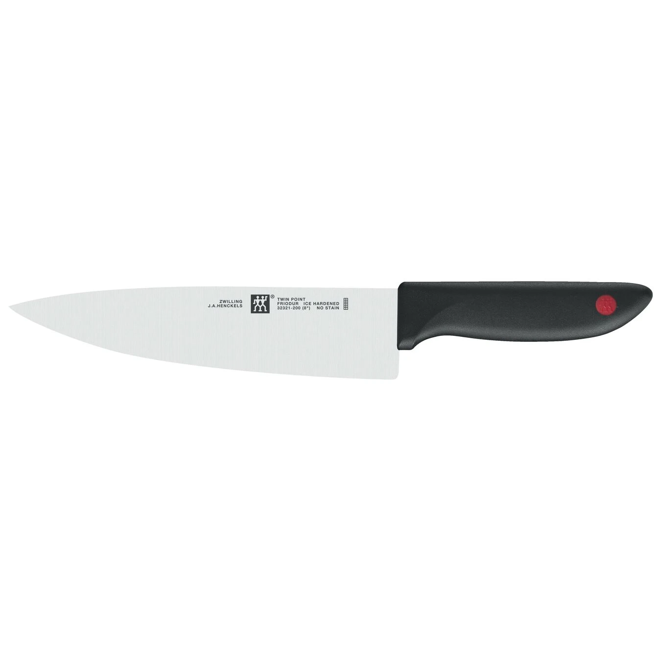 The chef’s knife from the TWIN® Point range by ZWILLING is a true all-rounder for cooking enthusiasts. The stable knife has a broad, powerful blade and straight cutting edge, which reliably cuts and chops vegetables and herbs. The chef’s knife features an ergonomic handle in non-slip plastic, which ensures safe and comfortable handling. The striking red ZWILLING logo is also eye-catching and lends an elegant appearance. The blade is made from the special ZWILLING special formula steel, a high-quality stainless steel, which is then ice-hardened. This special material ensures that the blade with FRIODUR® logo is particularly resistant to corrosion, has excellent cutting properties and is extremely flexible. This knife is an all-rounder that will assist in daily cooking. With this kitchen aid from the TWIN® Point range from ZWILLING you can cut vegetables and herbs for tasty salads reliably and precisely.