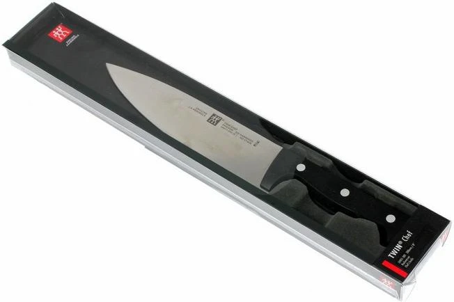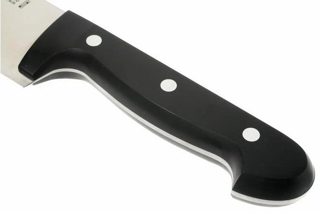 By offering the Twin Chef kitchen knives, Zwilling has given an option to chef’s with a limited budget, who want high quality Zwilling knives nonetheless. The blade of these knives is full tang: it runs entirely through the ergonomically shaped plastic handle. The blade is made of ice-hardened Friodur steel, the same as the more expensive series. This type of steel is hardened in 4 stages, where it is first heated up to 1000 ° C, and then cooled down to -70 ° C.