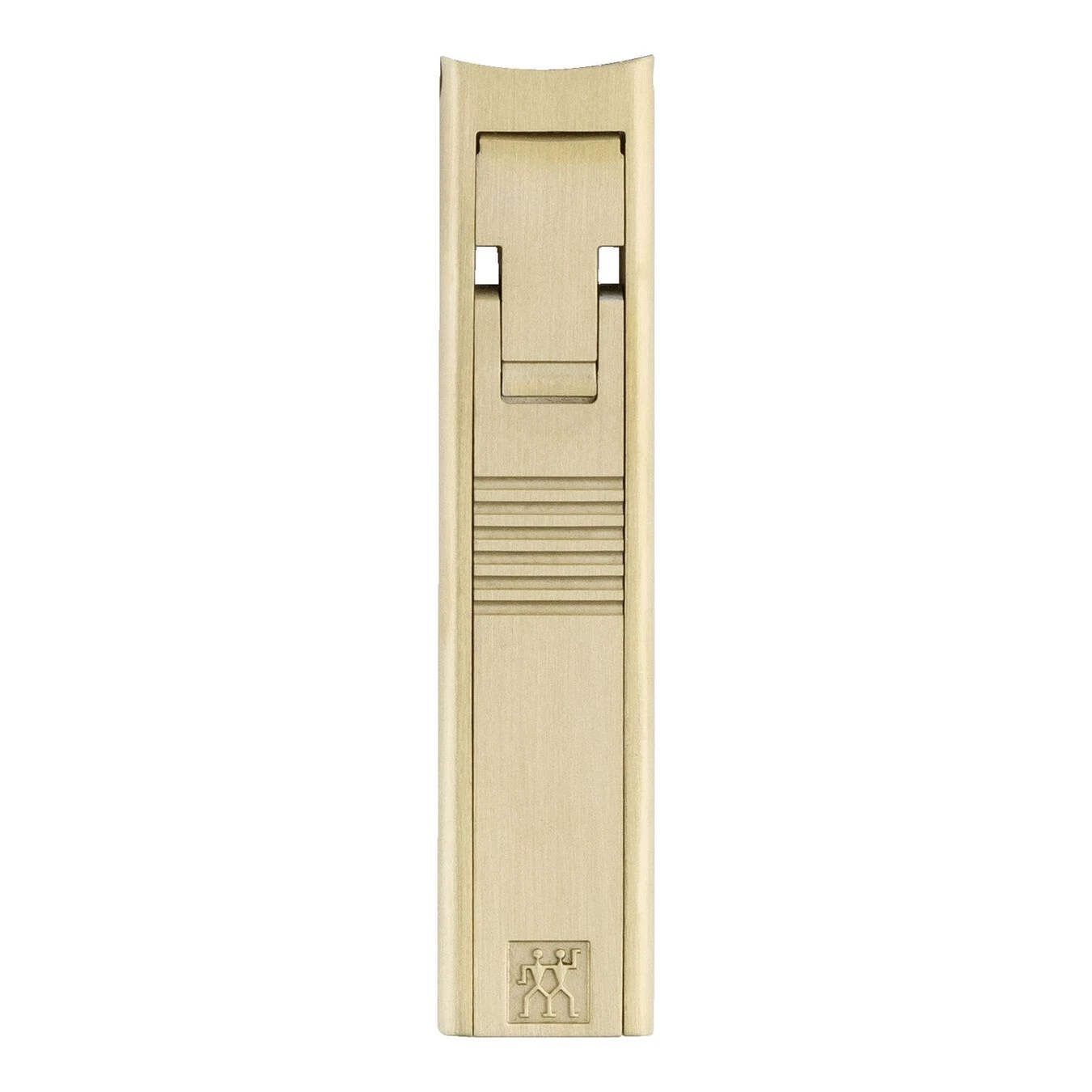 The TWIN® S nail clipper from the exclusive TWINOX® Gold Edition combines traditional craftsmanship, the most modern manufacturing processes and the highest quality materials for a care experience at the highest level. Thanks to its strong leverage, the cutting edge of the nail clipper glides powerfully and cleanly through fingernails and toenails, guaranteeing absolutely precise results. The elaborate refinement of the ergonomically perfect TWINOX® series with an innovative PVD coating in fine gold increases both the shape retention and the scratch resistance of the nail clipper. In this way, the instruments of the TWINOX® Gold Edition achieve an absolute maximum of durability and functionality in a unique, modern design.