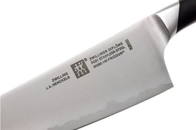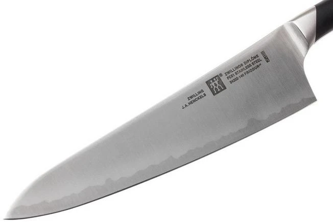 This Zwilling Diplôme chef’s knife is enhanced with a 14 cm blade. The compact chef’s knife is perfect for the more detailed tasks, like finely cutting vegetables and herbs.